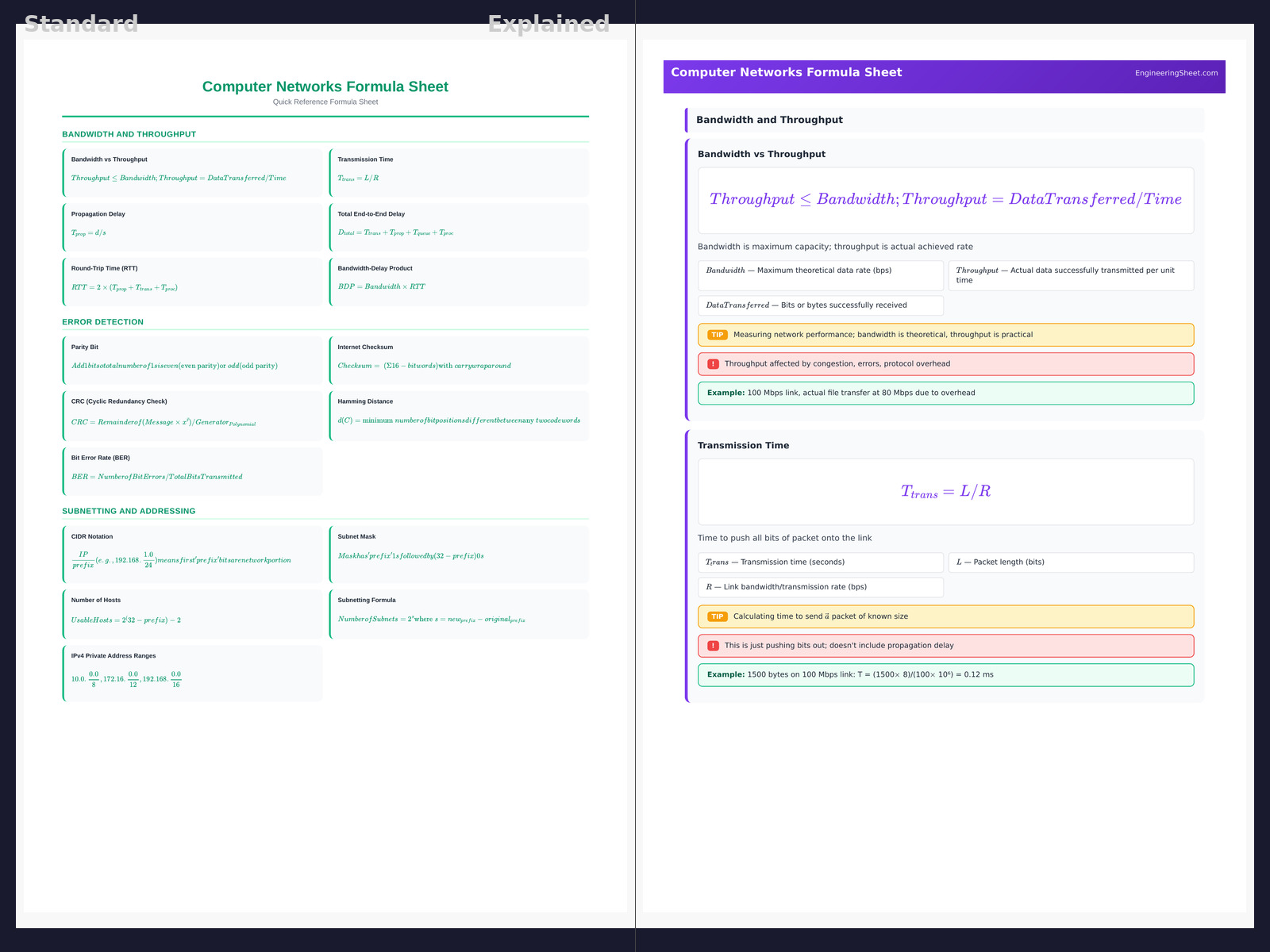 Computer Networks Formula Sheet