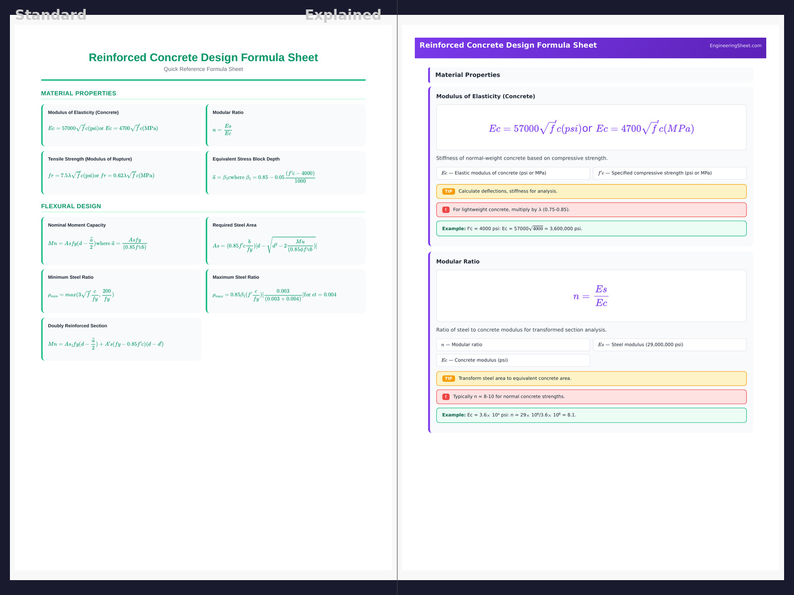 Reinforced Concrete Design Formula Sheet