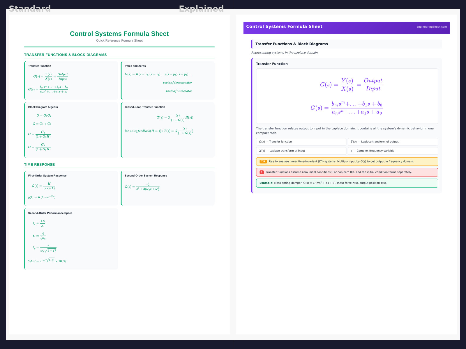 Control Systems Formula Sheet