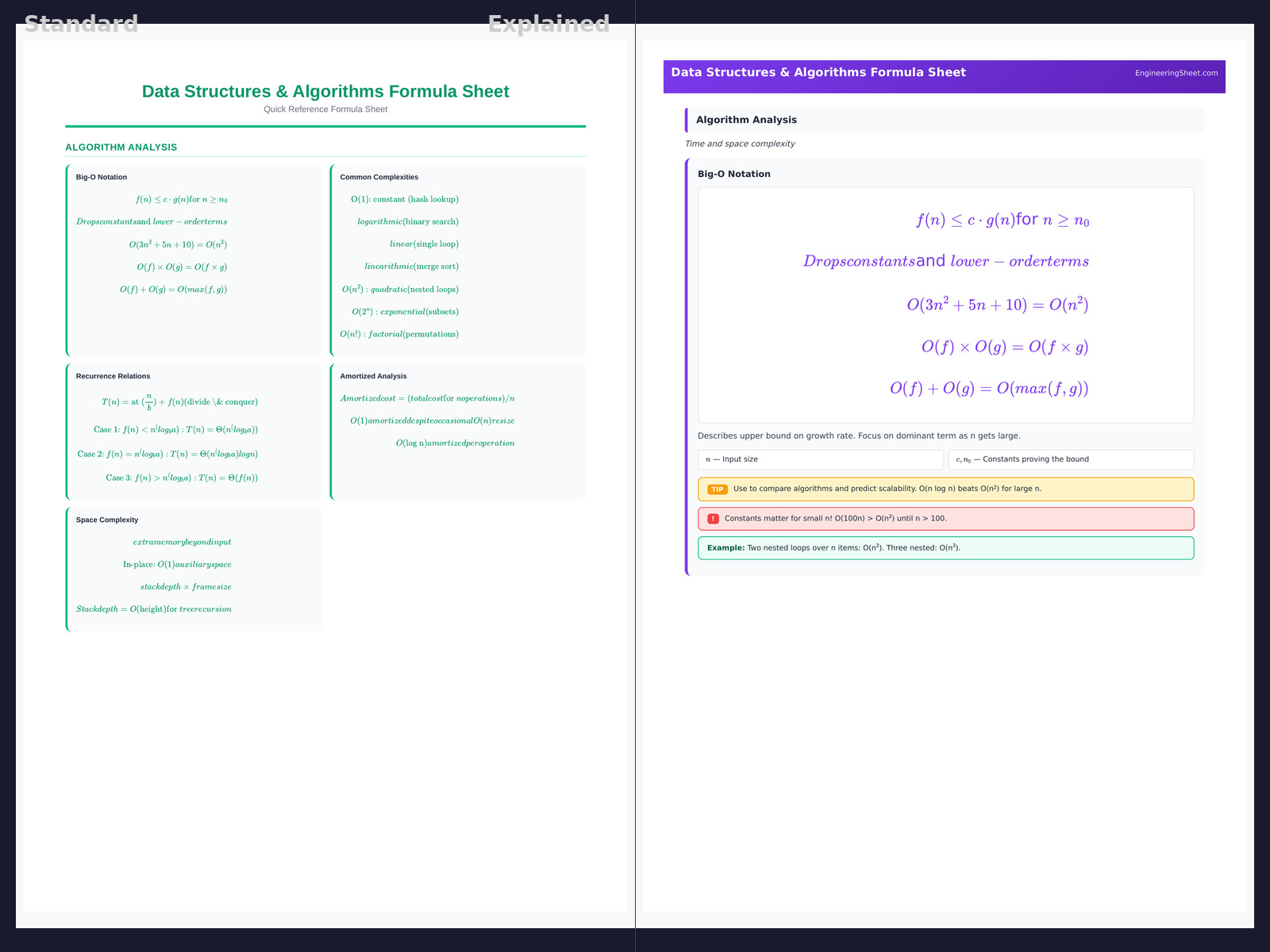 Data Structures & Algorithms Formula Sheet