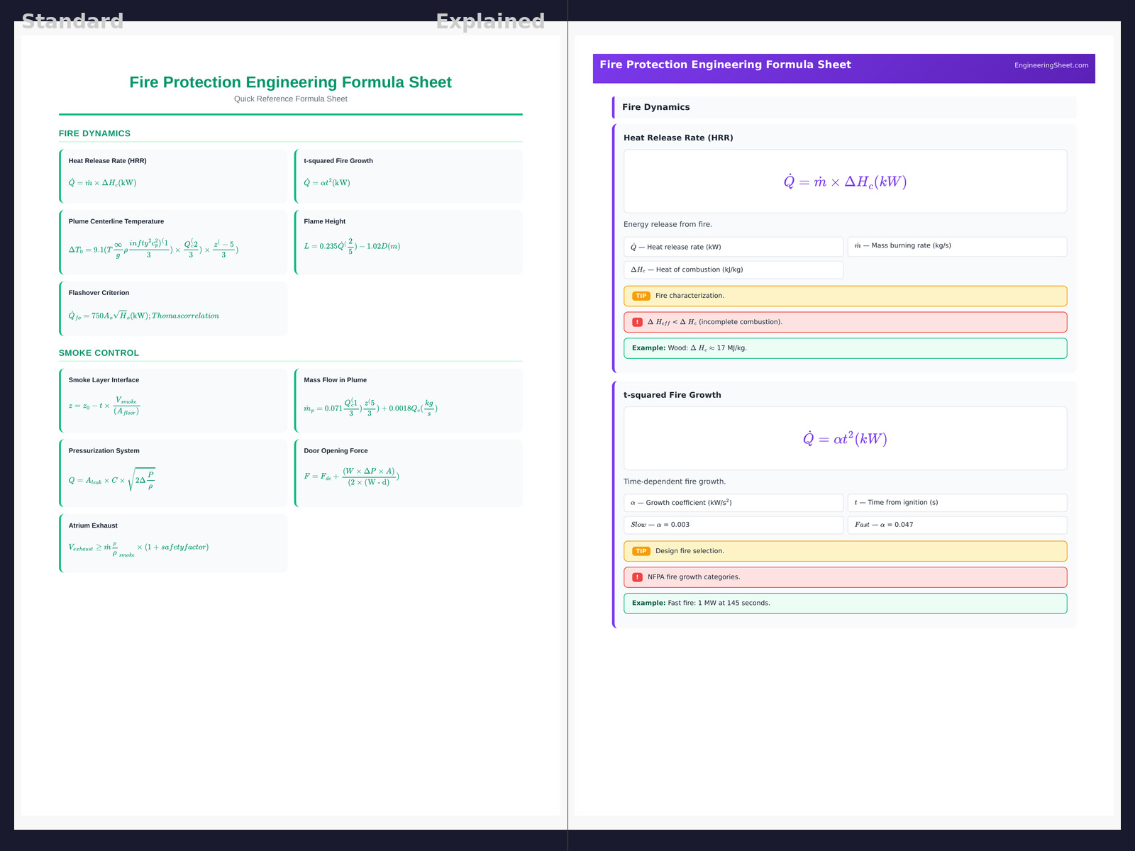 Fire Protection Engineering Formula Sheet