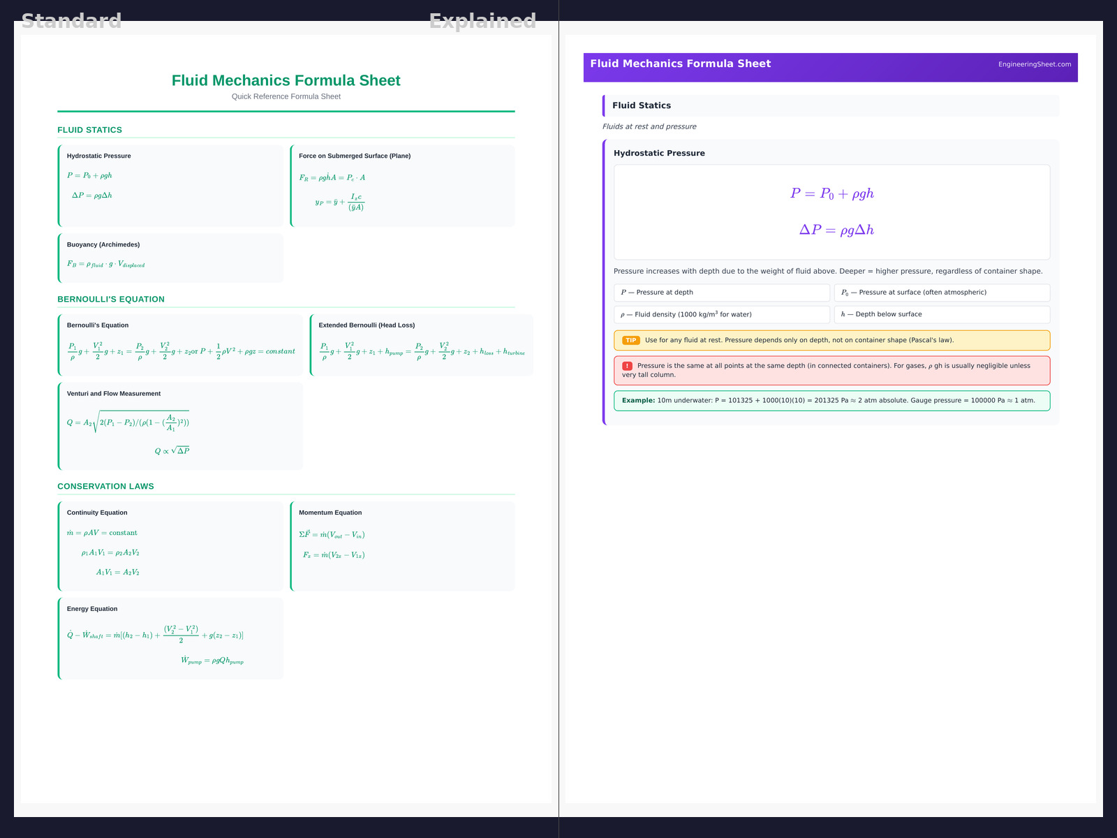 Fluid Mechanics Formula Sheet