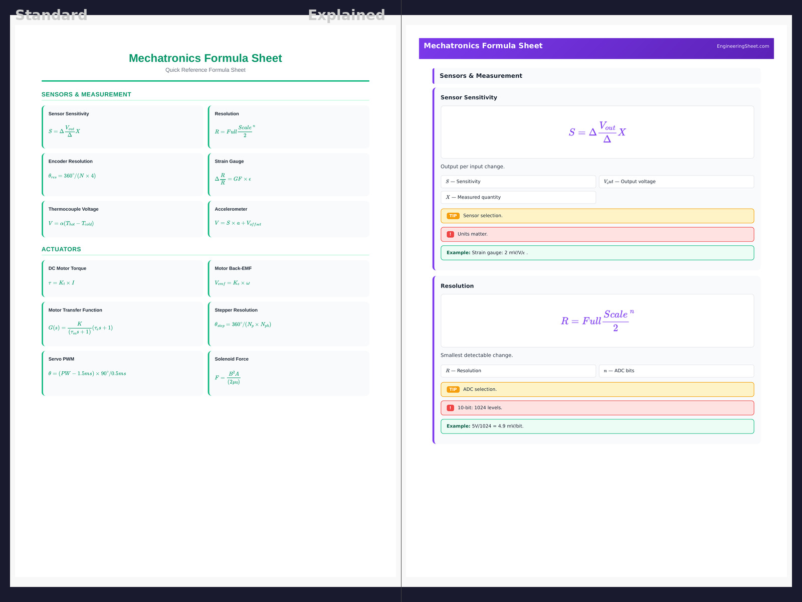 Master mechatronics with formulas covering sensors, actuators, control systems, microcontrollers, and system integration.