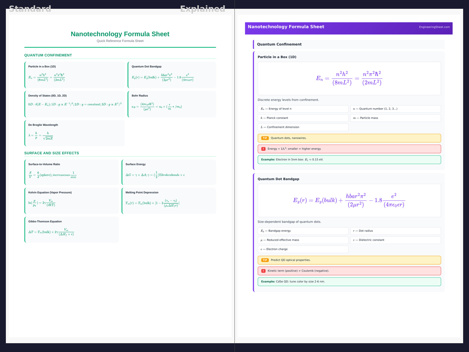 Nanotechnology Formula Sheet