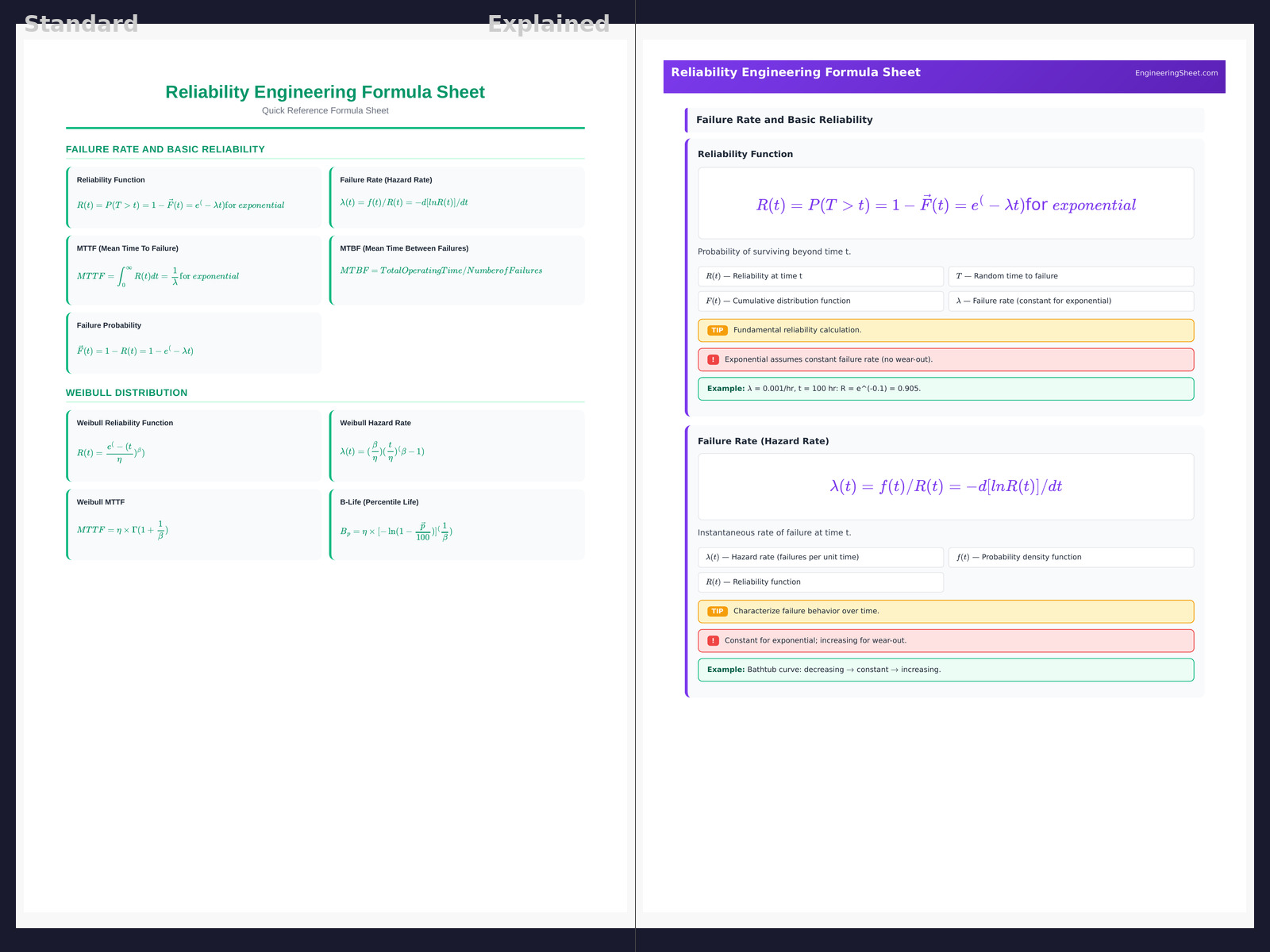 Reliability Engineering Formula Sheet