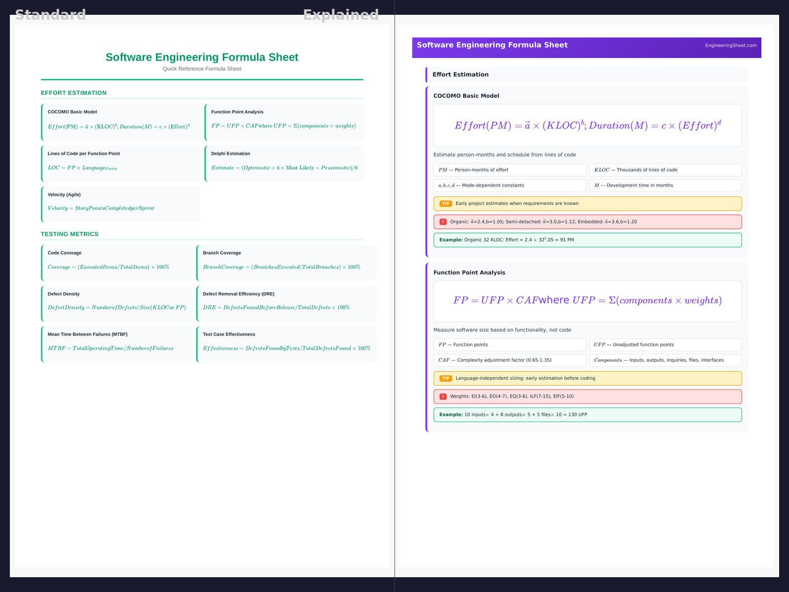 Software Engineering Formula Sheet