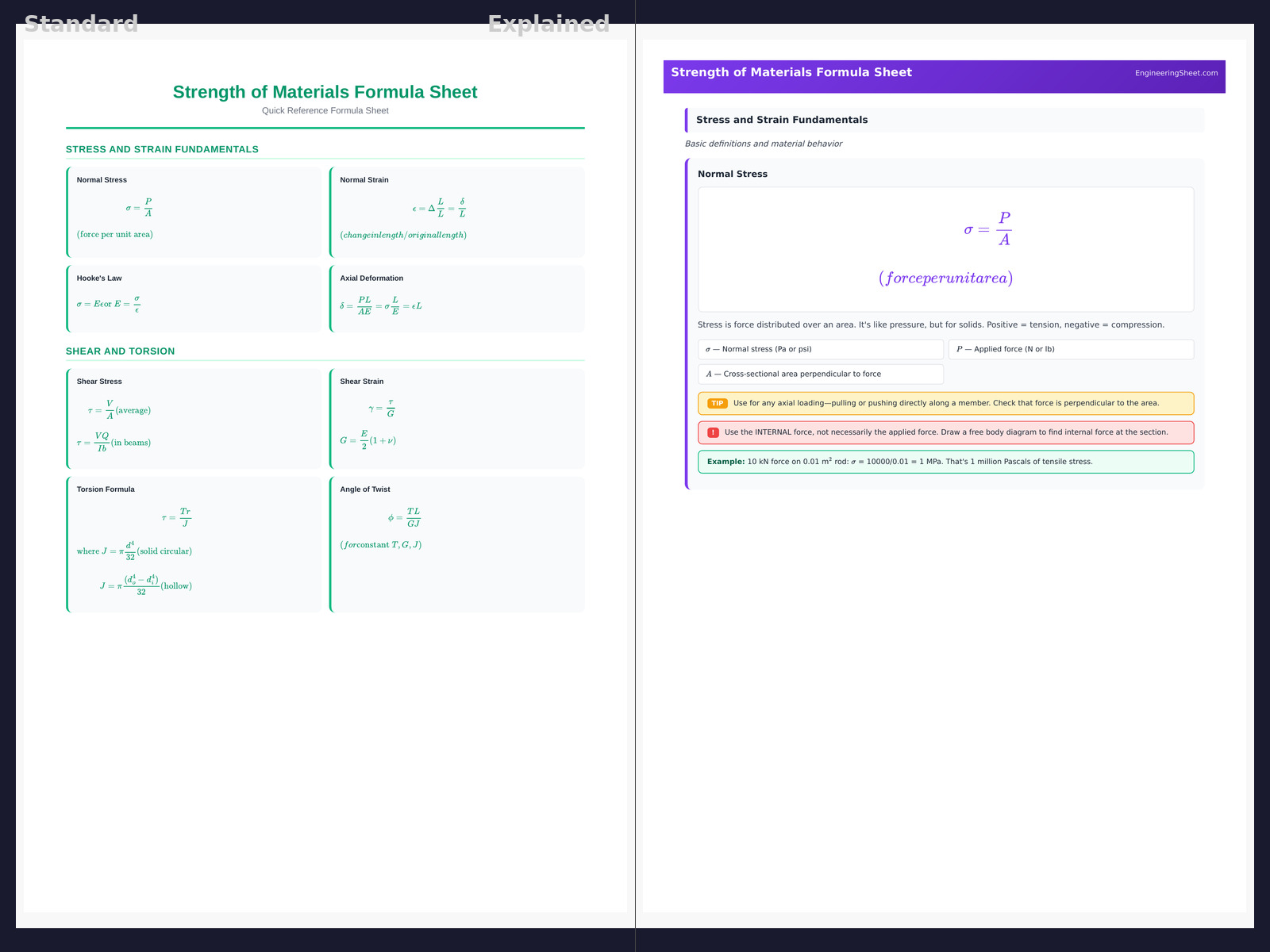 Strength of Materials Formula Sheet