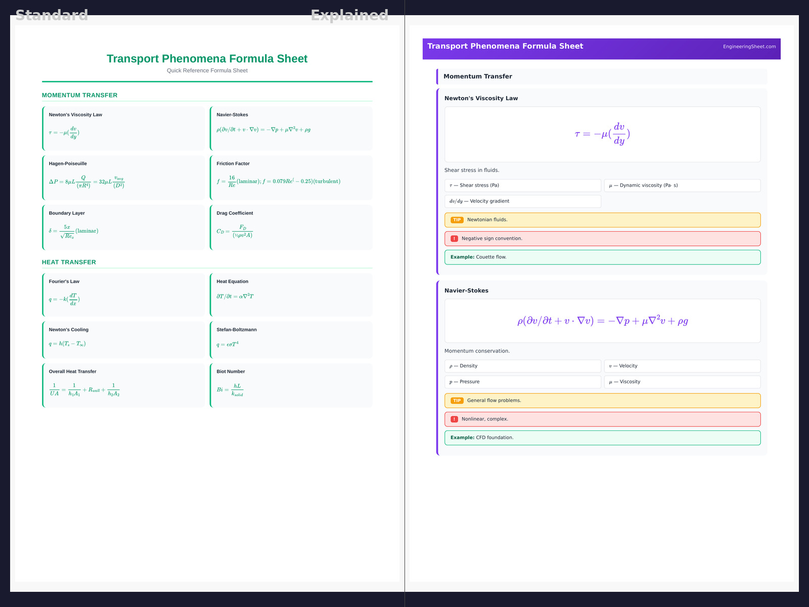 Master transport phenomena with formulas covering fluid mechanics, heat transfer, mass transfer, and their analogies.